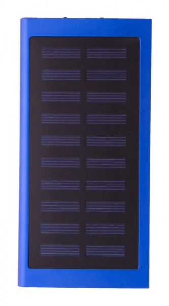 USB power banka 4000 mAh z recyklovaného hliníka so zabudovanou solárnou nabíjačkou. S 2 portami USB a 1 portom USB-C pre nabíjačku. Vstupný port USB-C. Vrátane USB nabíjacieho kábla.