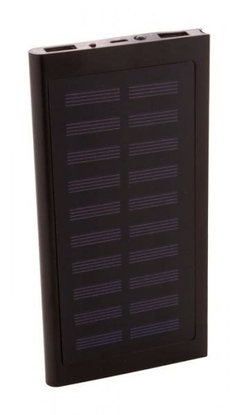 USB power banka 4000 mAh z recyklovaného hliníka so zabudovanou solárnou nabíjačkou. S 2 portami USB a 1 portom USB-C pre nabíjačku. Vstupný port USB-C. Vrátane USB nabíjacieho kábla.
