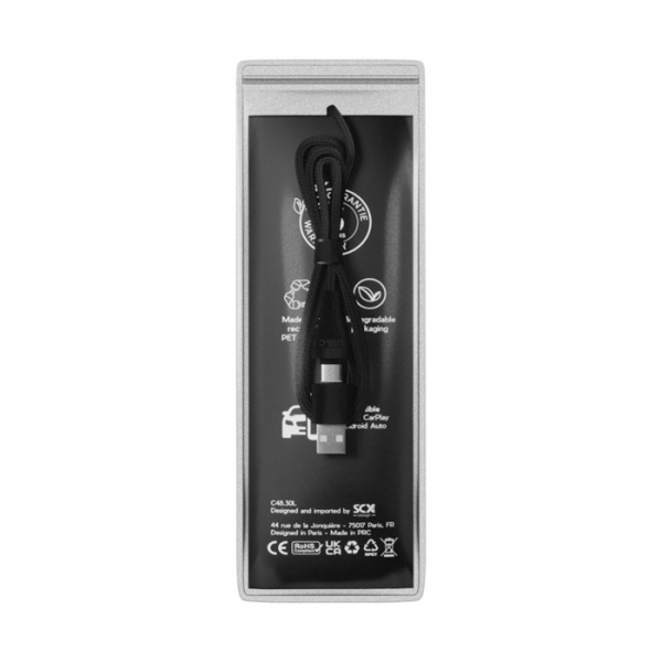 Nabíjací kábel 5v1 s gumovým a kovovým povrchom a dvojitým podsvieteným logom. Kompatibilný s Apple CarPlay a Android Auto. Vďaka duálnemu USB-A USB-C výstupu je kompatibilný s najnovšími počítačmi (USB-C). V biologicky rozložiteľnom TPU sáčku. Dĺžka: 1 m