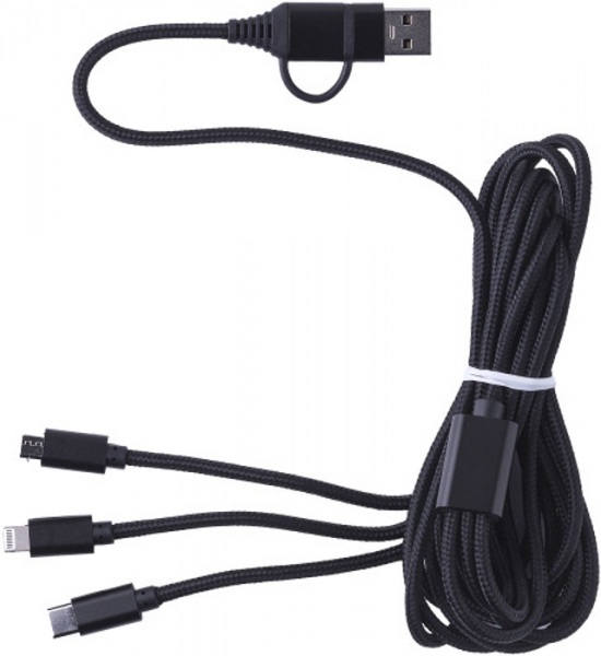 Nylonový nabíjací kábel s dĺžkou 190cm s rôznymi konektormi: Vstup USB-C, vstup USB-A, výstup USB-C, micro USB. 100% medené drôty.