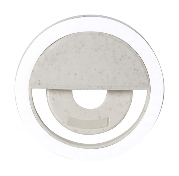 Ekologické plastové selfie kruhové svetlo z pšeničnej slamy s 36 LED pre mobilné telefóny. S 3 nastaviteľnými úrovňami jasu a vstavanou dobíjacou batériou. Vrátane USB nabíjacieho kábla.