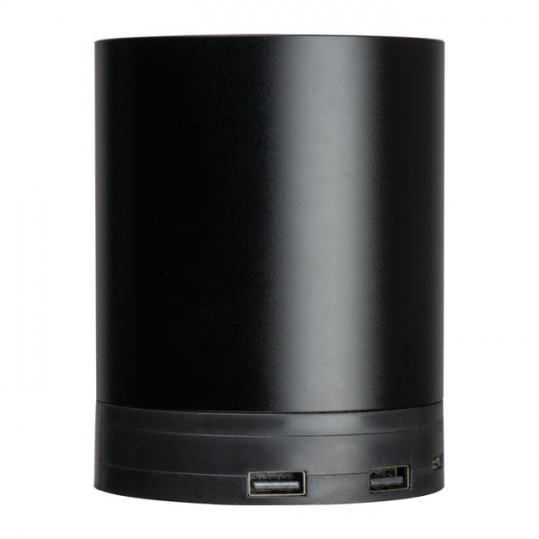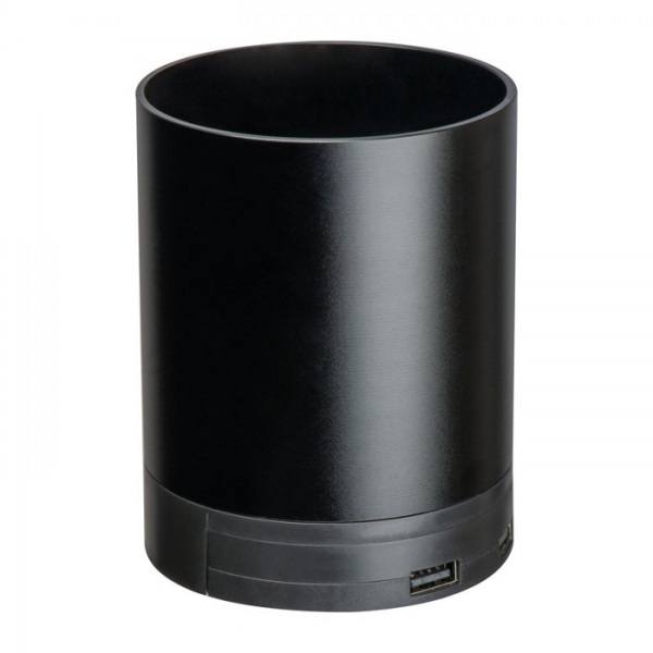 Držiak na pero z recyklovaného hliníka s funkciou bezdrôtového nabíjania a rozbočovačom USB (výkon 5 W). Súčasťou je nabíjací kábel typu C.