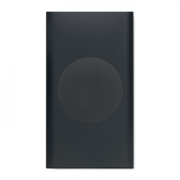 Bezdrôtová 15W nabíjacia powerbanka s kapacitou 5000 mAh z recyklovaného hliníka. Vstup: Typ-C. Výstup: 1 x Typ-C a 1 x Typ-A.