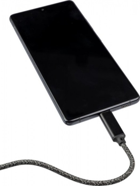 Nylonový nabíjací kábel s hliníkovými konektormi. Dĺžka: 1 meter. USB-C na USB-C. Kapacita: 100 W. Modrá kontrolka rýchlosti nabíjania. Jednotlivo balené v hnedej kartónovej krabici. Rýchlosť prenosu dát 480 Mbps.