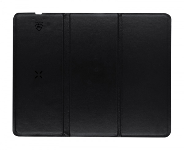 Skladacia podložka pod myš z recyklovanej PU kože so vstavanou bezdrôtovou nabíjačkou (10W) a funkciou držiaka mobilného telefónu. So zamatovou protišmykovou základňou. Vrátane USB nabíjacieho kábla.