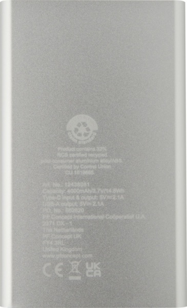 Pomocou portu typu C môžete ľahko nabiť powerbanku alebo svoje zariadenie, zatiaľ čo port USB typu A je možné použiť na súčasné nabíjanie dvoch zariadení. 4000mAh batéria s výkonom 10W. Obsahuje nabíjací kábel TPE typu C na USB typu A.