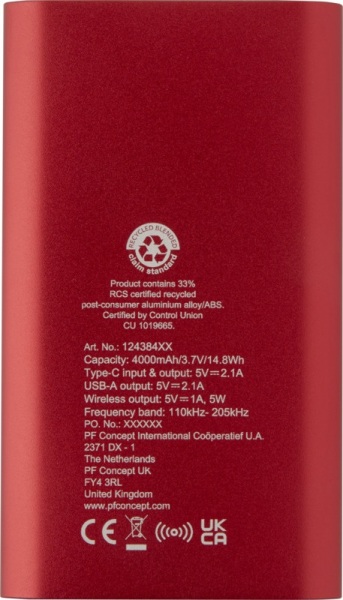Powerbanka so vstupným/výstupným portom USB-C a portom USB-A, možné nabíjať 2 zariadenia súčasne. Podporuje 5W bezdrôtové nabíjanie pre zariadenia s podporou Qi. 4000mAh batéria s výkonom 10W. Dodávané s nabíjacím káblom TPE typu C na USB typu A.