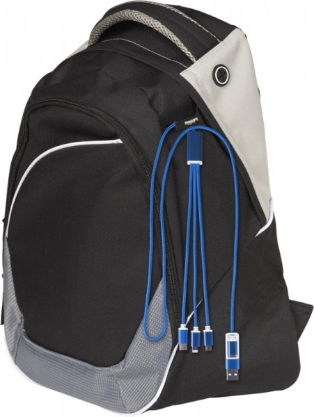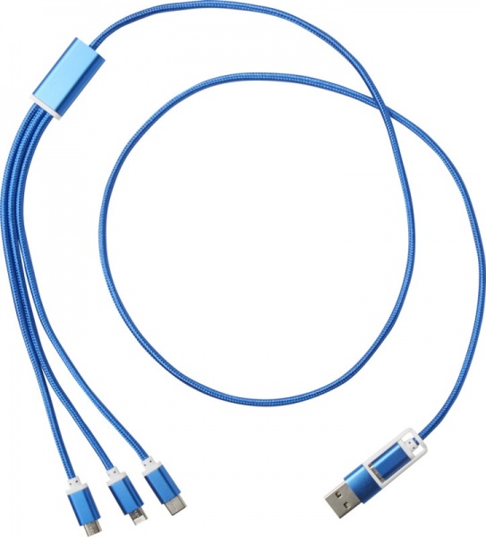 Vstupný konektor USB-A a USB-C spolu s kombinovaným výstupným konektorom USB-C, Micro USB a Lightning/Micro USB. Kábel 100 cm z recyklovaného hliníka a RPET.