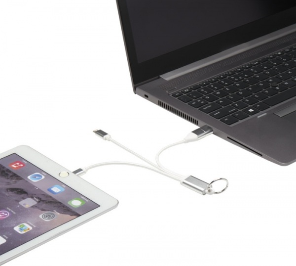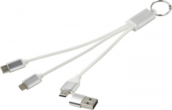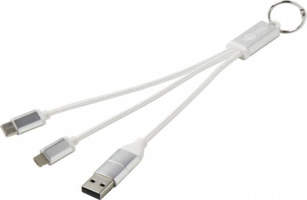 Nabíjací kábel s kľúčenkou 4v1, max. výkon 10W. Vďaka vstupným konektorom USB-A a USB-C v kombinácii s kombinovanými výstupnými konektormi typu C a Lightning/Micro USB môžete nabíjať väčšinu smartfónov, powerbánk a slúchadiel.