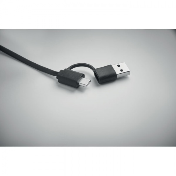 60W navíjací kábel v recyklovanom ABS kryte. Vstup: 2 v 1 typu C a typu A. Výstup: Type-C a micro-B (2v1 pin). Dĺžka kábla: 80 cm.