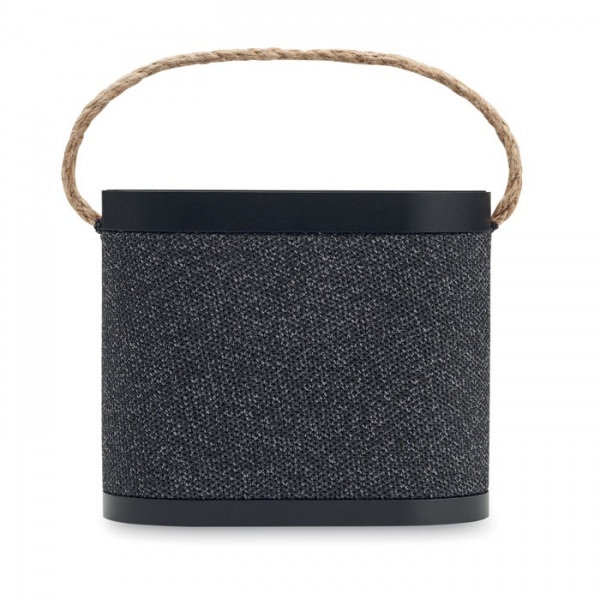5.3 bezdrôtový reproduktor z ABS s RPET polyesterovou tkaninou a bambusovou 15W bezdrôtovou nabíjačkou s jutovou rukoväťou. 1 nabíjateľná Li-Ion 1200 mAh batéria. Výstupné údaje: 5W, 4 Ohm a 5V. Doba hrania cca. 4h.
