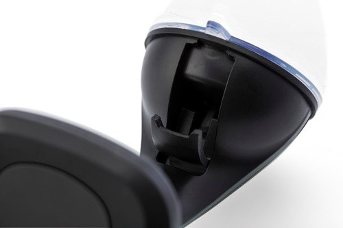 Plastový nastaviteľný držiak na mobil do auta, s prísavkou v dolnej časti pre pripevnenie na palubnú dosku alebo okno. Držiak sa dá rozšíriť až na 8,1 cm. Stlačením tlačidla sa držiak stiahne.