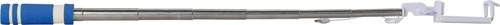 Teleskopická selfie tyč z plastu ABS, maximálna dĺžka tyče je 61 cm, s penovou rukoväťou EVA. Vrátane tlačidla spúšte na rukoväti a kábla na mobil.