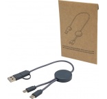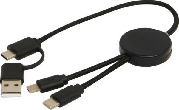 27W dátový synchronizačný kábel 5v1 pre rýchle nabíjanie. Vstupný konektor USB-A a USB-C, výstupný USB-C a Lightning/Micro USB. USB-A na USB-C výstupný výkon max 27W a ostatné pripojenia max 15W. Kompatibilný s CarPlay and Android Auto. Dĺžka: 30 cm.