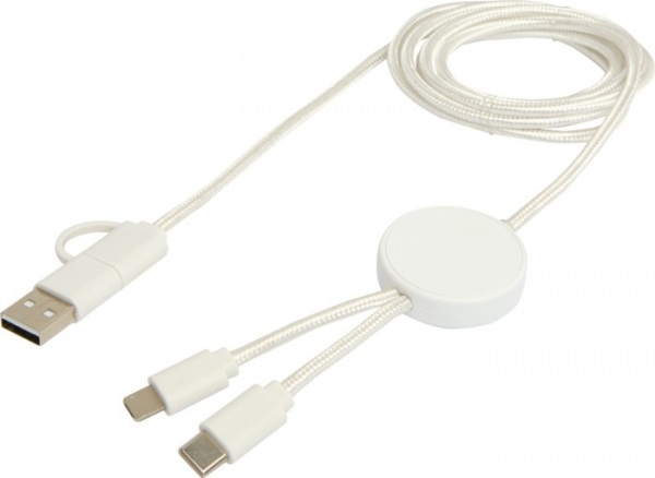 27W dátový synchronizačný kábel 5v1 pre rýchle nabíjanie. Vstupný konektor USB-A a USB-C, výstupný USB-C a Lightning/Micro USB. USB-A na USB-C výstupný výkon max 27W a ostatné pripojenia max 15W. Kompatibilný s CarPlay and Android Auto. Dĺžka: 30 cm.