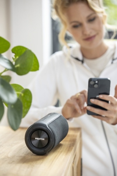 Reproduktor Echo Box s výkonom 30W vydrží 5–6 hodín bez nabíjania a je možné ho plne nabiť za 2–3 hodiny. Bluetooth® 5.2 poskytuje stabilné spojenie. Disponuje mikrofónom a funkciou handsfree. Stupeň vodeodolnosti IPX6.