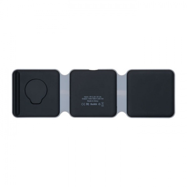 Praktická bezdrôtová nabíjačka 3v1, ktorá umožňuje pohodlné nabíjanie 3 zariadení súčasne (mobil, slúchadlá a smart hodinky). Vstup: 9V/2,22A, 12V/1,67A, QC3,0/PD Výstup:Iphone 15W,Airpods 5W, hodinky 2,5W(max),Typ C