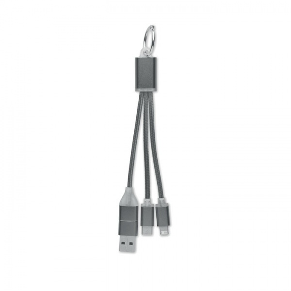 Kľúčenka s nabíjacím káblom so vstupom: 2 v 1 typ-C a typ-A a micro-B (2 v 1 pin) a výstupom typu-C.