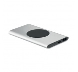 Bezdrôtová 15W nabíjacia powerbanka s kapacitou 5000 mAh z recyklovaného hliníka. Vstup: Typ-C. Výstup: 1 x Typ-C a 1 x Typ-A.