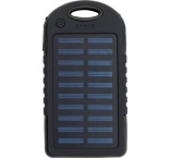 Pogumovaná solárna powerbanka z ABS plastu so zelenými kontrolkami a bočnou baterkou. Dva USB porty a jeden USB-C port. Solárne nabíjanie 5V/200mA. Vstup DC 5V/1A. Výstup DC 5V/2x1A. Kapacita: 4 000 mAh. Súčasťou balenia je USB kábel.