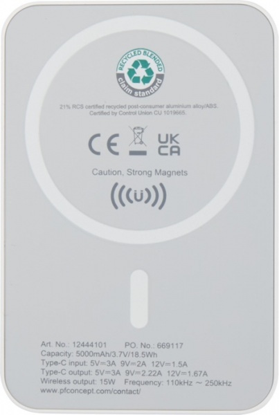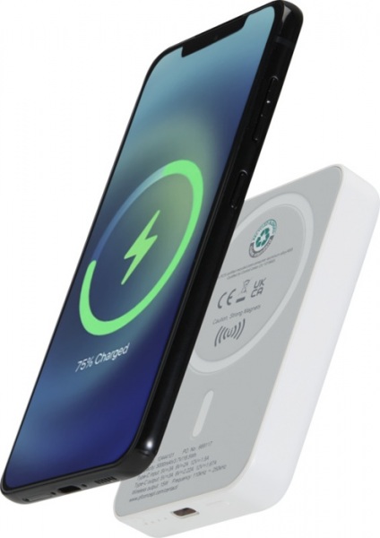 Powerbanka 5000 mAh z recyklovaného plastu. 15W magnetické bezdrôtové nabíjanie kompatibilných smartfónov. 20W rýchle nabíjanie pomocou kábla typu C a umožňuje nabíjať 2 zariadenia súčasne (bezdrôtovo aj cez kábel). LED indikátor stavu nabitia.