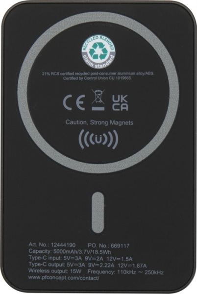 Powerbanka 5000 mAh z recyklovaného plastu. 15W magnetické bezdrôtové nabíjanie kompatibilných smartfónov. 20W rýchle nabíjanie pomocou kábla typu C a umožňuje nabíjať 2 zariadenia súčasne (bezdrôtovo aj cez kábel). LED indikátor stavu nabitia.