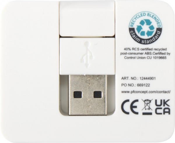 USB hub z recyklovaného plastu. Je praktický, disponuje vstupným konektorom USB-A alebo USB-C a ponúka štyri výstupné porty (dva USB-A a dva USB-C), čo umožňuje jednoduché pripojenie viacerých USB zariadení súčasne. Rýchlosť prenosu dát až 480 Mb/s.