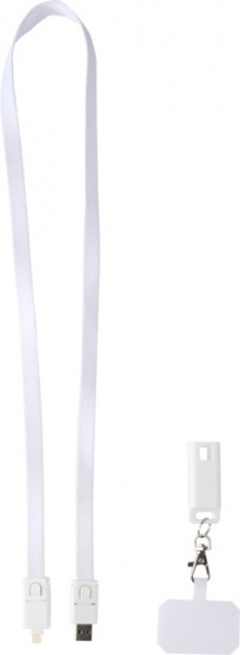 Šnúrka na smartfón z recyklovaného plastu so vstavaným 65W nabíjacím káblom 5v1, ktorý ponúka vstupy typu C a USB-A a výstupy typu C, Lightning a microUSB. Je kompatibilný so štandardmi CarPlay aj Android Auto.