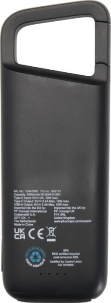 Powerbanka 5000 mAh z recyklovaného plastu. Je určená na vonkajšie použitie, disponuje vstavanou karabínou a vodeodolným prevedením (IPX5). USB porty sú chránené silikónovým krytom a LED indikátor zobrazuje stav nabíjania.