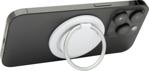 Príslušenstvo k telefónu vyrobené z recyklovaného plastu, určené pre modely iPhone 12 a novšie, disponuje silným magnetickým úchopom a vstavaným stojanom, ktorý slúži zároveň ako bezpečný držiak alebo praktický stojan.