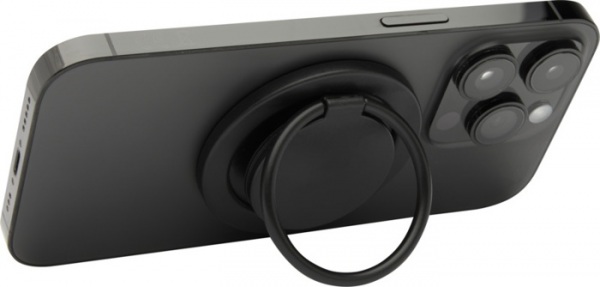 Príslušenstvo k telefónu vyrobené z recyklovaného plastu, určené pre modely iPhone 12 a novšie, disponuje silným magnetickým úchopom a vstavaným stojanom, ktorý slúži zároveň ako bezpečný držiak alebo praktický stojan.