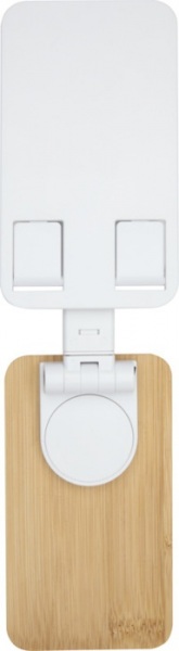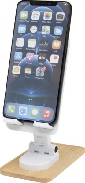 Stolový stojanček na telefón z recyklovaného plastu a bambusu zo zodpovedne získavaných zdrojov a ponúka pre telefón robustné a štýlové riešenie. Nastaviteľné uhly a výška zaisťujú pohodlný zážitok zo sledovania.
