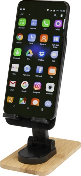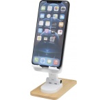 Stolový stojanček na telefón z recyklovaného plastu a bambusu zo zodpovedne získavaných zdrojov a ponúka pre telefón robustné a štýlové riešenie. Nastaviteľné uhly a výška zaisťujú pohodlný zážitok zo sledovania.