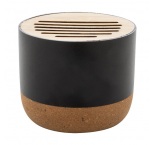 Bezdrôtový reproduktor v puzdre z recyklovaného hliníka s bambusovou sieťovinou a základňou z prírodného korku. S dobíjacou batériou (400 mAh). Vrátane nabíjacieho kábla USB.