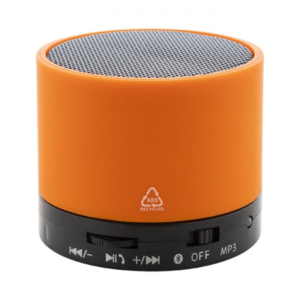 Bezdrôtový reproduktor z recyklovaného ABS v pogumovanom puzdre s kovovou sieťovinou a dobíjacou batériou (300 mAh). S funkciou handsfree hovorov a prehrávanie MP3 z micro SD karty. Vrátane nabíjacieho kábla USB.