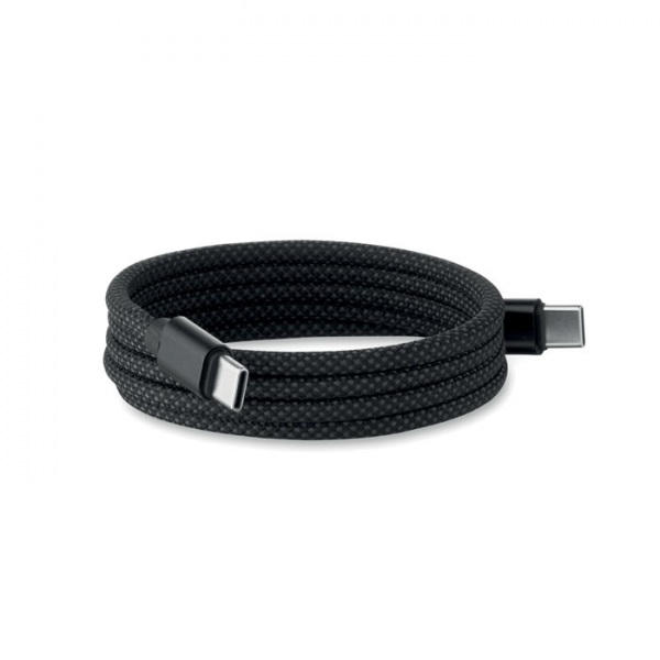 Pletený magnetický kábel odolný voči zamotaniu vyrobený z hliníka a RPET s certifikátom GRS. Typ C do C, rýchle nabíjanie 60 W, dĺžka 1 m. Vždy sa úhľadne stohuje a nikdy sa nezaviaže do uzla.