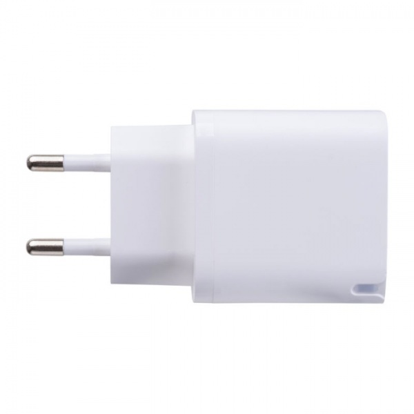 Sieťová nabíjačka Plug-in 30W, vybavená portami USB-A a USB-C a funkciou rýchleho nabíjania. Ideálna na rýchle nabíjanie smartfónov, tabletov a iných zariadení