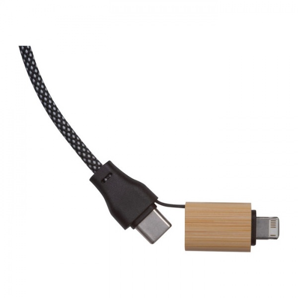 3 m rýchlonabíjací kábel (60W) s USB-C konektorom, pripojiteľným USB adaptérom a USB-C výstupom. Kábel s PET povrchom proti poškodeniu