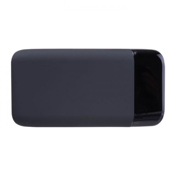 Powerbank s kapacitou 8 000 mAh, mäkký gumový povrch, LCD displej, obsahuje USB-C kábel. Logo bude osvetlené vstavanými LED