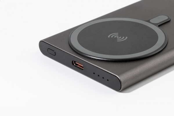 Powerbanka s magnetickou bezdrôtovou rýchlonabíjačkou (15W) a 5000 mAh batériou. USB-C port. Obsahuje samolepiaci kovový krúžok na použitie magnetickej funkcie na akomkoľvek bezdrôtovom zariadení. Kompatibilný s iPhone® 12 alebo novším.