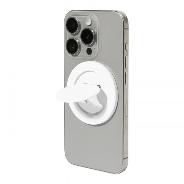 Magnetický držiak na mobil z recyklovaného ABS. Vrátane samolepiaceho kovového krúžku pre telefóny bez magnetického povrchu.