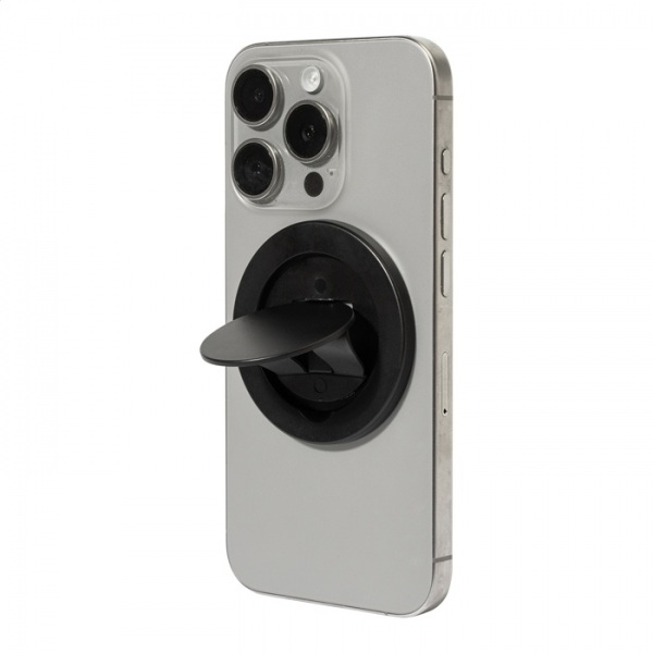 Magnetický držiak na mobil z recyklovaného ABS. Vrátane samolepiaceho kovového krúžku pre telefóny bez magnetického povrchu.
