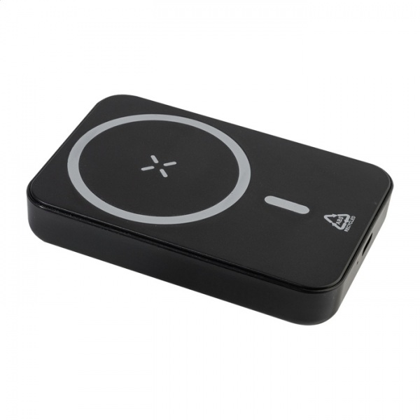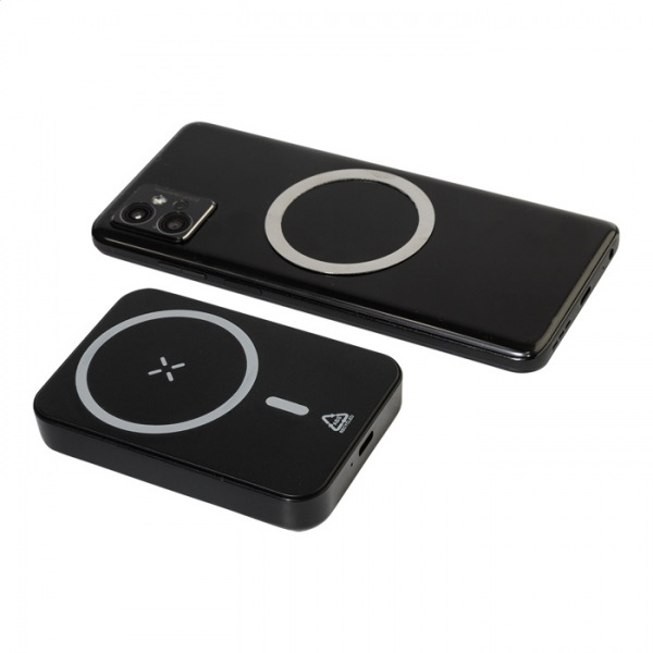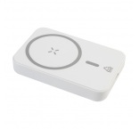 Powerbanka 5000 mAh s magnetickou bezdrôtovou rýchlonabíjačkou (15W). USB-C vstup. Vrátane samolepiaceho kovového krúžku na použitie magnetickej funkcie na akomkoľvek bezdrôtovo nabíjacom zariadení. Kompatibilný s iPhone® 12 alebo novším. Vrátane kábla.