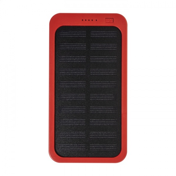 Power banka z recyklovaného ABS plastu so vstavanou solárnou nabíjačkou a batériou 4000 mAh. S 1 USB a 1 USB-C portom na nabíjanie. Vstupný port USB-C. Vrátane nabíjacieho kábla USB.