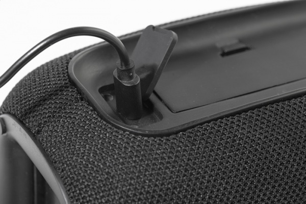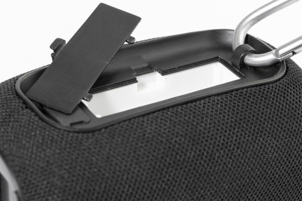 Bezdrôtový reproduktor z recyklovaného ABS plastu s RPET polyesterovou sieťovinou, hliníkovou karabínou a kovovým štítkom s logom. So vstavanou dobíjacou batériou (1800 mAh). Vrátane USB nabíjacieho kábla.
