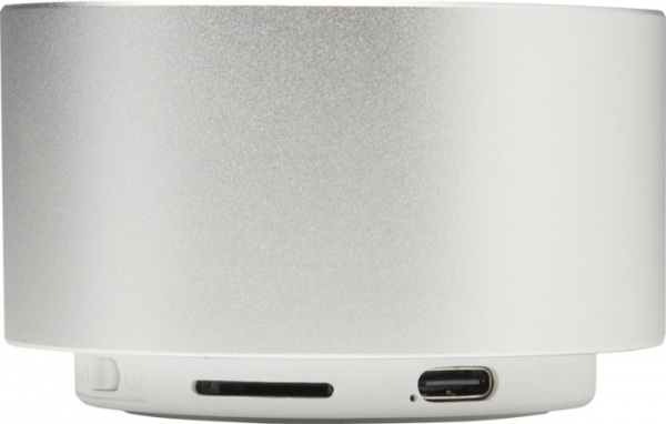 Bluetooth® reproduktor (3W) z recyklovaného hliníka s tlačidlami na ovládanie hudby, tlačidlom napájania a integrovaným mikrofónom pre handsfree hovory. Súčasťou balenia je 30 cm nabíjací kábel USB-A na USB-C.
