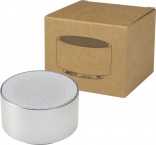 Bluetooth® reproduktor (3W) z recyklovaného hliníka s tlačidlami na ovládanie hudby, tlačidlom napájania a integrovaným mikrofónom pre handsfree hovory. Súčasťou balenia je 30 cm nabíjací kábel USB-A na USB-C.