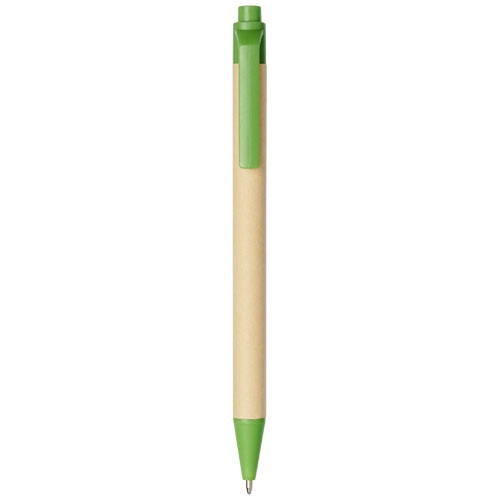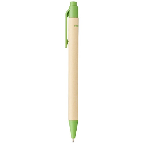 Ekologické guľôčkové pero s telom vyrobeným z biologicky odbúrateľného papierového materiálu s doplnkami z kukurice a plastu, dostupné v rôznych farbách.