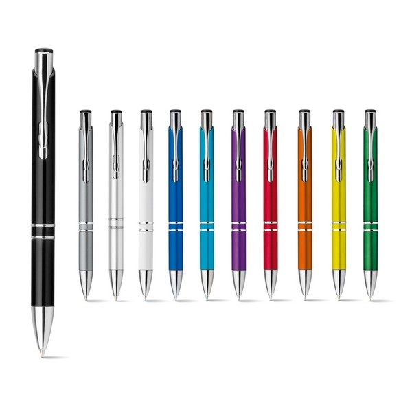 Guľôčkové pero s kovovým klipom. Modrá náplň.