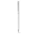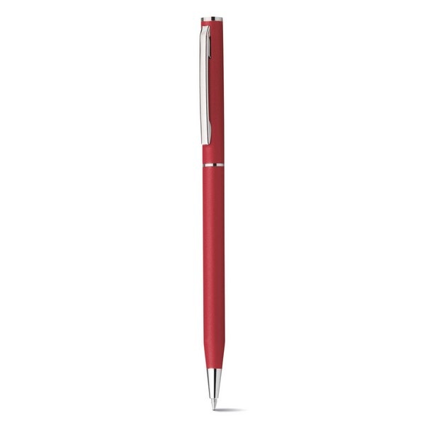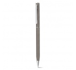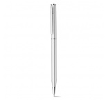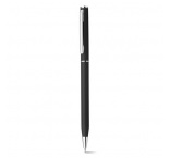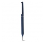 Hliníkové guľôčkové pero s klipom a otáčacím mechanizmom. Modrý atrament.